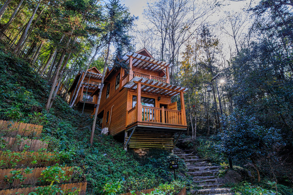 花源谷位于神秘的北纬29°,秀山碧水环绕、阳光花木辉映,是养生度假好去处,故又称“阳光照耀29度度假区”。