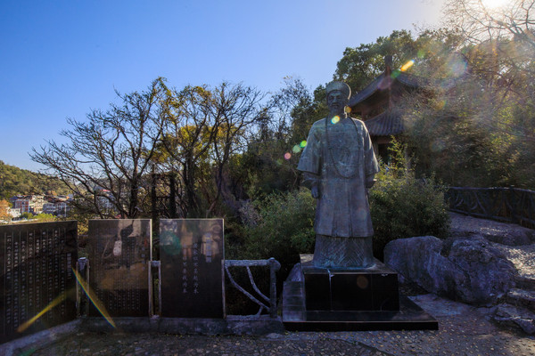 穿过山门后,迎面而来的是大诗人苏轼的雕塑,仿佛它正在迎接着你的到来。要知道这位大文豪对于石钟山可谓是爱得深沉,不仅多次游览石钟山,甚至还为其写下了一篇绚丽多彩的诗文——《石钟山游记》。