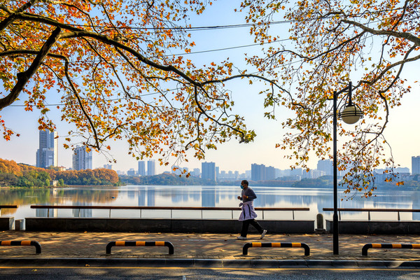 每当清晨或傍晚,两湖边总有很多走湖健身的市民。