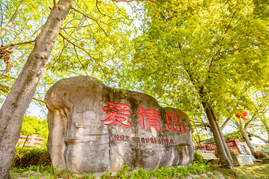 初见爱情岛,迎接我的是一块极具年代感的石碑,“爱情岛”三个大字历历在目,石头表面无比斑驳,倒更像是一件艺术品,让人不禁感叹大自然的鬼斧神工。沿着小径一路前往,感受脚下的鹅卵石肆意跳动,让人倍感惬意。