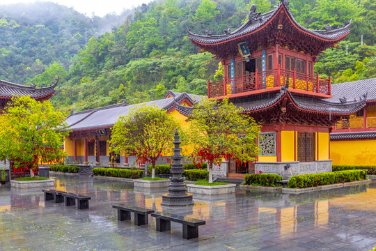踏入圣集寺,浓郁的北方园林建筑气息扑面而来,这里虽然地处江南,采用的却是北方建筑艺术手法,以栗色为主调,在斗拱飞檐的衬托下,仿佛置身皇家园林,威严十足。从古至今,这里便是香火旺盛之地,古代时期甚至一度成为江南佛教文化中心,吸引了不少文人雅士慕名而来。