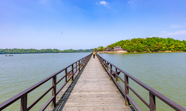漫步爱情岛,有种置身鼓浪屿之感,文艺、恬静、清新,时光仿佛被湖水冲淡了一般,慵懒而随意。沿着忘情桥缓缓踱步,两岸风光尽揽怀中,古老的浮桥倒影在湖面,涟漪间光影跳动,仿佛一不小心就被卷入一场美梦之中。