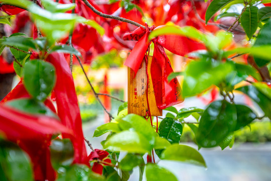 相比于如是我闻,祈殿显得更加典雅秀气,金色的牌匾高高挂起,精致的门窗半掩着,殿内香火旺盛,殿外欣欣向荣,许愿结压满枝头,寄托着香客们的美好心愿。寺内还坐落着一座巨型香炉,造型独特,风格独树一帜,在香火的浸染下,香炉依旧不改颜色,浓浓的历史厚重感扑面而来。