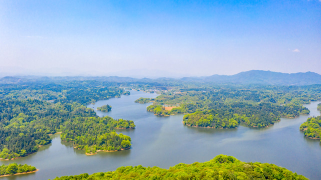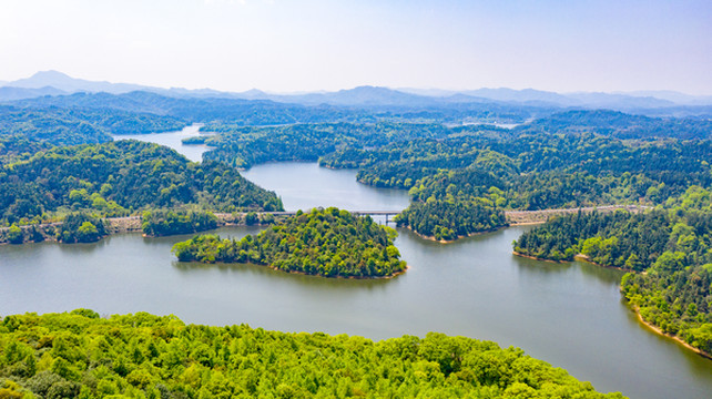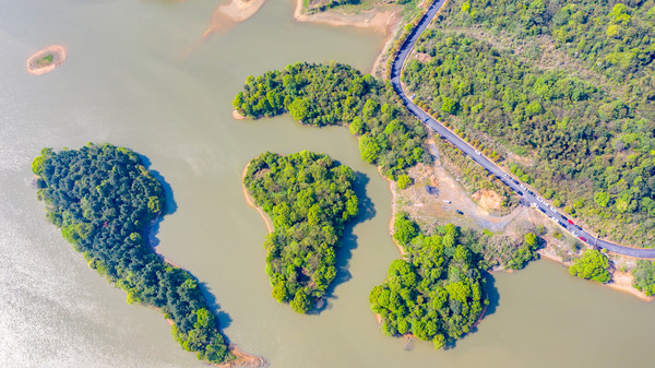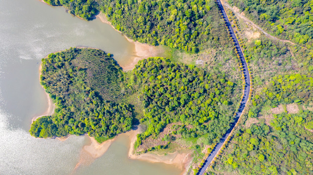 无人机下的环湖路恬静得只剩下岁月,它像是一条灰色的玉带镶嵌在丛林之中,谱写柳暗花明的惊喜,更像是一部永不退色的时光机,定格下独属于仙女湖的天上人间。远处的山峦忽明忽暗,烟雾缭绕,仿佛很近,又很远。