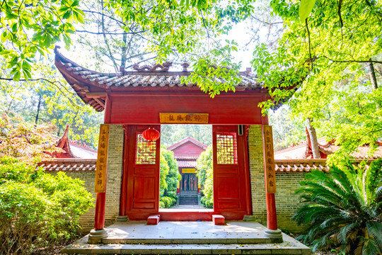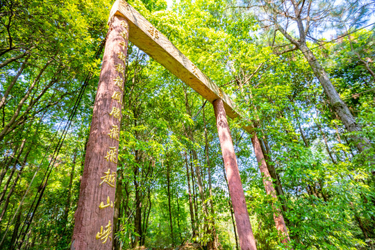 岛屿主要由名人植物园、名人雕塑园和抱石文化园三部分组成,古色古香的路牌藏匿于苍翠之中,雨水顺着木头滑落,一旁的红叶格外娇艳,空气中弥漫浓浓的春意。
