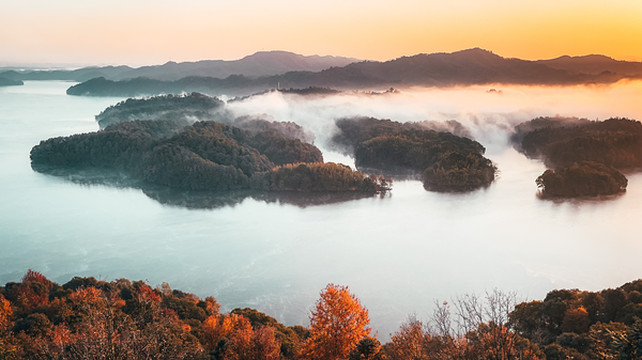 这里真的超大,据说穿插交错有99座岛屿、60多条湖湾,著名景点有爱情岛、会仙岛、桃花岛、舞龙湖、凤凰湾……光听名字就集齐有画面感。