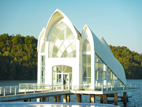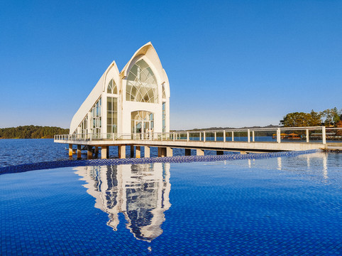 在凤凰湾,有一座爱情小镇,看着湖边圣洁的白色教堂,简直让人想原地结婚;这里还有一大片研学基地,可以带宝宝来体验各种好玩的。