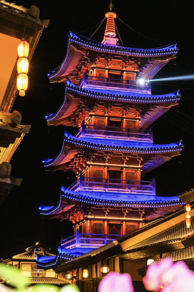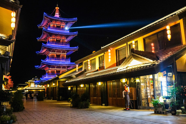 夜游小镇,主打的就是一个宽心~整体是以唐风宋韵建筑风格为基调,行走在小镇里瞬间觉得一秒穿越到盛唐长安的feel~