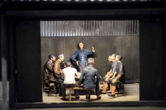 这座具有民族风格的旧址共设有一个序厅和四个展室。