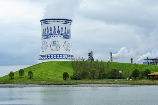 而且是免费状态噢,公园内的大烟卤被改造成青花瓷的样子,加上周围草坪、湖面的衬托,格外清新~爱拍照的小仙女们,一定不要错过来这儿打卡噢~