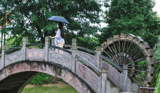 在柳溪江的身后,还有一座状元桥,撑着雨伞走过这小桥流水,江南的天气,总是雨天比晴天更有诗意。