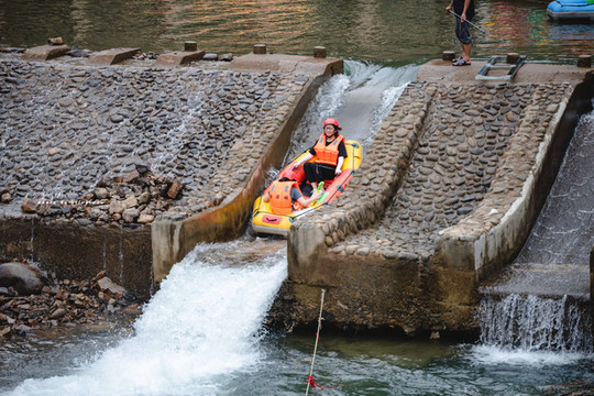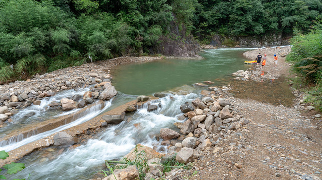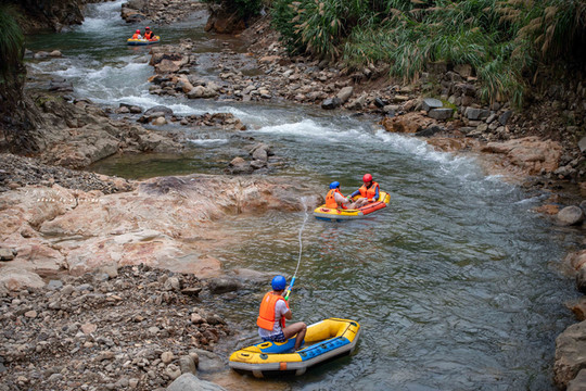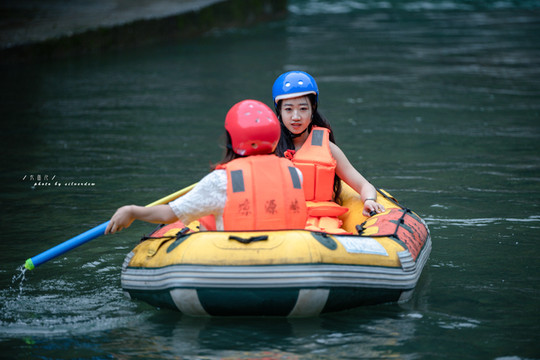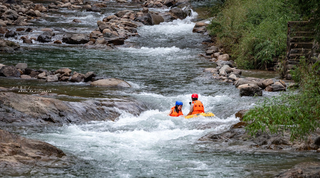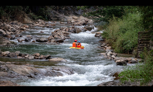 享受皮划艇任凭溪水冲打的刺激,更享受在这酷暑难耐的夏日,溪水湿身的凉爽,看着两岸树木丛生,刺激中又多了些许浪漫,