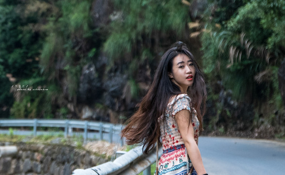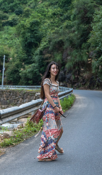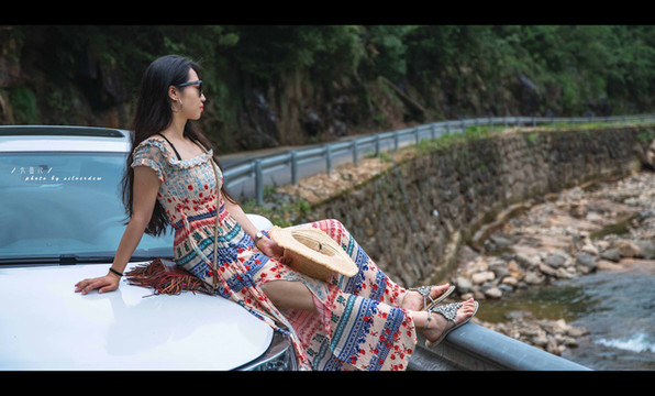 蜿蜒的公路与溪水并行于山间,听着潺潺流水,看着云清风淡,行云流水般的山路镶嵌于山谷之中。