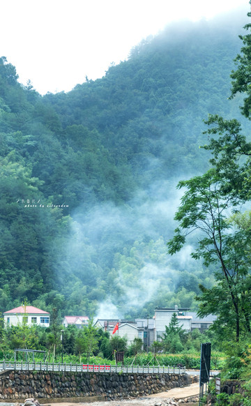 村庄坐落于这里的青山脚下,旁边便是凉源峡漂流,可谓是青山绿水,环抱于此,山间炊烟袅袅,如丝如缕,村外茫茫,一缕青丝存于乡间。