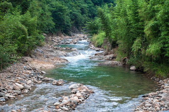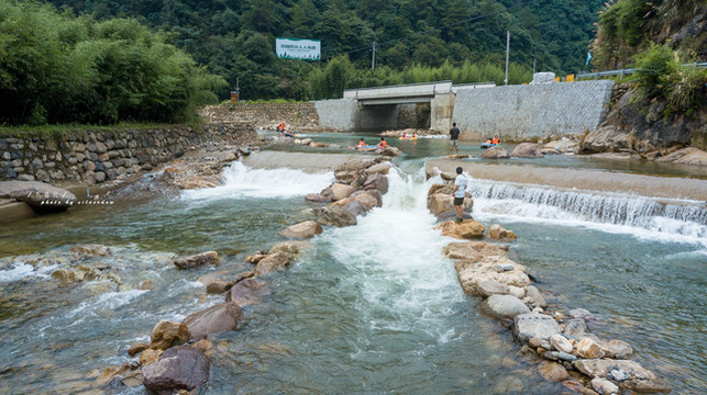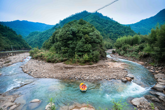 漂流周边生态优良,两岸山峦起伏,峡谷纵深,绿树成荫,风光旖旎。河道原始河床露面,水质清澈见底,游鱼可数。建设漂流项目的自然禀赋得天独厚,而且这条溪被众多驴友们认为是临安最适合做激情漂流的河道。
