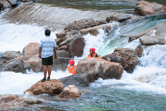 当漂流快接近终点的时候,水面相对宽阔和缓,在这里恰好来一场水中的嬉戏,这时候便是水中大战了,还可以寻宝嬉水,超赞。