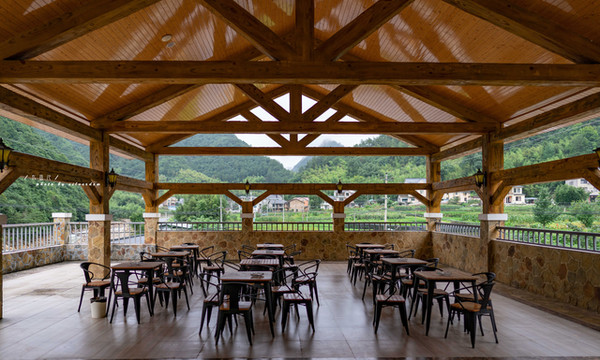 服务中心的休憩场所非常舒适,放眼望去便是田园风光,从这里望去,恰好可以看到坐落于山下的小村庄,还有一条通往山庄的小路,如果不敢时间,不妨在这里休憩片刻,感受下这里的田园风光。