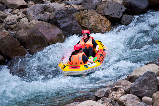 凉源峡漂流游程全长3公里,落差约120米,全程漂流近一个小时。整个过程高潮迭起,尖叫到爽,落差较大,极速刺激,有单体超过5米的跳跃漂、陡降漂,1.5米的跳台漂、波浪漂,连续急滩漂、回旋漂,给我们激流回旋般的刺激体验。接近漂流终点,水面相对宽阔和缓,考验我们的体力与控筏能力,寻宝嬉水打水仗是后半程的重头戏。