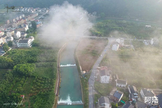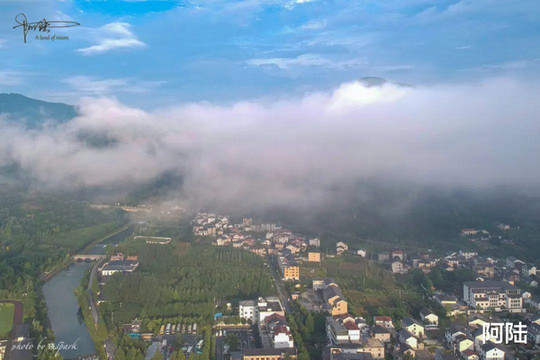 “吴越泉乡、千年湍口”,这里的乡村风景宜人,尤其是清晨醒来,忍不住到民宿的露台航拍一圈。那云雾缭绕的感觉让人以为是身处童话世界。
