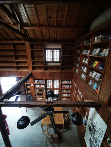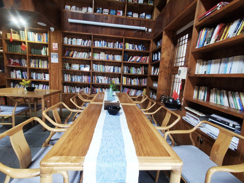 大厅为传统徽派建筑风格,布置雅致的书屋,