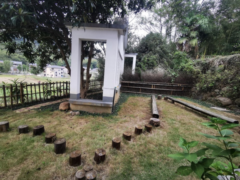 院落中的梅花桩,小朋友可以在这里走独木桥