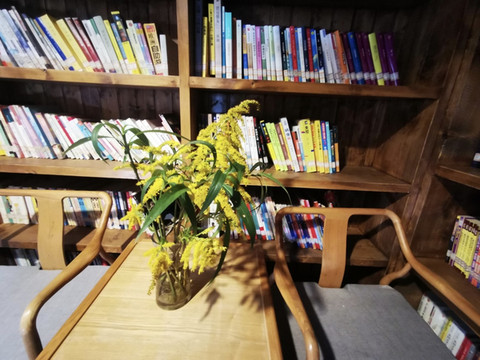 木制结构的二层小楼,中式木制家具摆设,二楼搭建成为书架,上下二层都放置着不少的书籍,也称其为“醒山书局”。