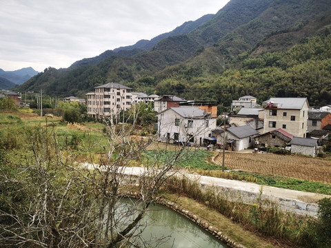 沿着山峦修建的民房