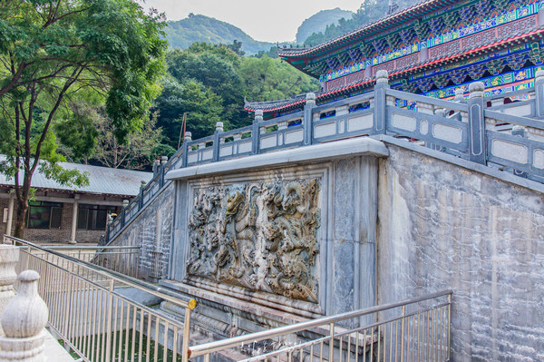 站在三星殿前眺望道院的山门便可遥遥地望见山顶石壁上地“寿”字,别有一番风味。