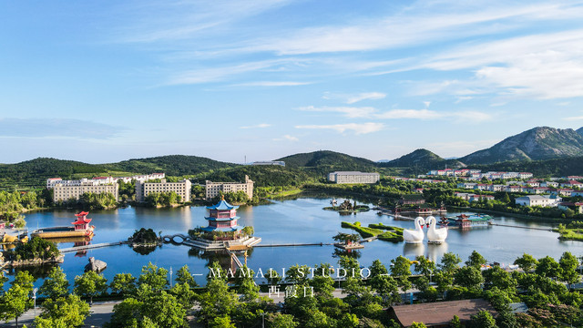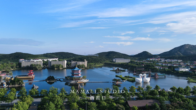 隆霞湖景区就在我们住的博霞山庄前面,这是一个非常漂亮的小景区。标志性的一对大天鹅,航拍看,非常灵动可爱。
