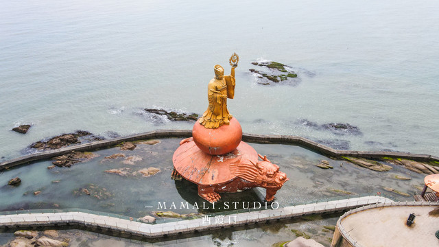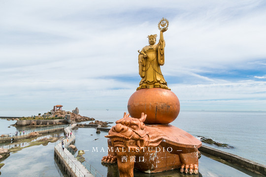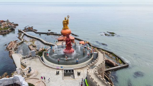 妈祖神像,妈祖是中国东南沿海和海外华人供奉的海洋保护神,福如东海景区的妈祖神像高11.6米,可自由升降1.5米,与之一体的音乐喷泉气势恢宏,动感壮观。