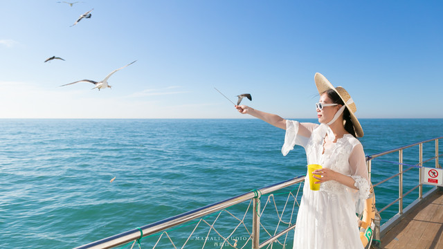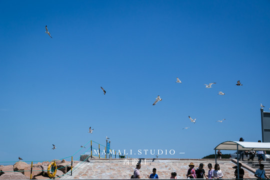 海天一色的晴好日子,看着这些可爱的海鸥,人们的心情也会变得很好。
