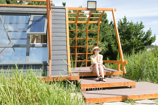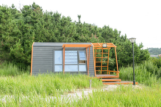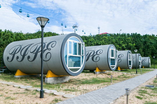 9住在管屋。海边的小木屋,层叠海浪陪你入睡,体验感超棒。
