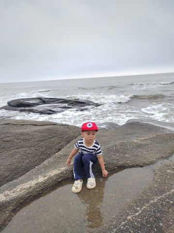 因为当天是阴天,没有太阳暴晒,我们决定带小朋友去海边玩儿。上午不到10点,驾车来到了那香海的钻石沙滩浴场,带着小朋友开始了与大海的第一次亲密接触。小朋友第一次真正下到海里,非常兴奋!挖沙子、学游泳,玩儿得不亦乐乎。中饭就在海边帐篷里吃的,吃完了接着玩,我们担心孩子太累,多次要走,但小朋友一直不肯走,玩到下午3点多才被我强行抱走,回到旅馆很快就睡着了。那香海景区是我从攻略里查到的,属于国家4A级景区,海滩附近除了停车场收费5元钱,没有其他收费项目。海滩坡度较缓,海沙较细,海水干净,是一个休闲避暑遛娃的好去处。
