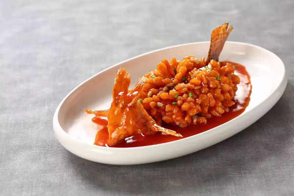 大黄鱼形如黄金,贵如黄金,烹制方法多种多样,而只有堂灼的做法是最考验食材新鲜程度的。堂灼的做法让鱼肉味觉口感趋近于完美。此菜也是蒋公在南京时常用来待客的菜肴,后成为市肆名菜。