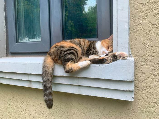 这边空气也特别好的,到处都是绿树,倒是很凉爽。看到了特别悠闲的喵星人,闭着眼睛,也太清闲了。