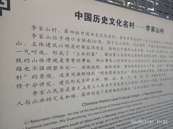 李家山村是著名画家吴冠中1989年10月到李家山采风时发现,他惊呼这里像“汉墓”,他说:从外部看像一座荒凉的汉墓,一进去是很古老讲究的窑洞,古村相对封闭,像与世隔绝的桃花源。 由于步行过来消耗大量体力所以就匆匆看看李家山村,也没有往村下面转转。回程搭了一辆当地的车回到碛口古镇,休息,下午3点多去西湾村。
