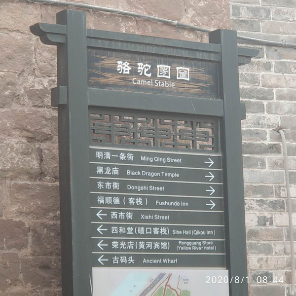 再逛一逛古街,路牌后两个字念(ku lue)蒙语,即围起来的草场、圈。旁边就是旧时骆驼交易市场