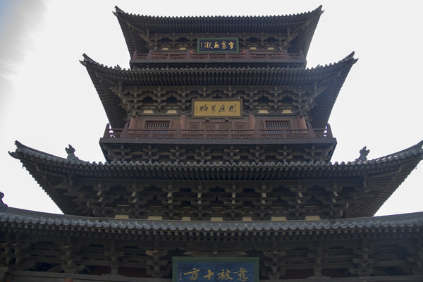 应县木塔实名释迦塔,位于朔州市应县县城佛宫寺内。木塔有严重倾斜——当然我们并不能感觉到,但因此只能在木塔一层参观。