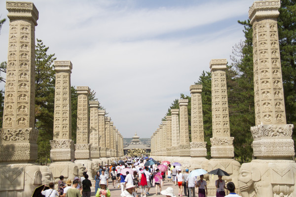 走进大门,是两侧伫立排列着雕有佛像的柱子的佛光大道。