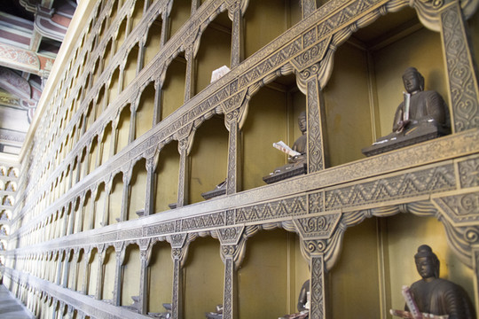 千佛殿内两侧才是千佛殿得名的原因,上千尊佛像形态各异,着实令人叹为观止。破例放图。