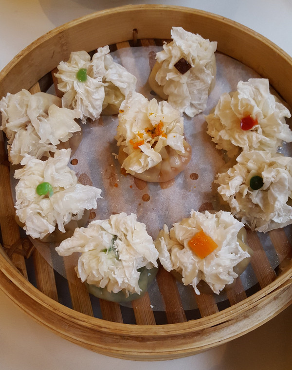 凤临阁最著名的是百花稍麦,样子着实好看,然而对于我们这种口味并不能容乃百川的人来说,猪、牛、羊、鸡、鱼、虾、菜等九种馅一起吃也是醉醉的。单就猪肉稍麦来说,里面肉汁饱满,让我想起了西安回民街的灌汤包子,还算可以。