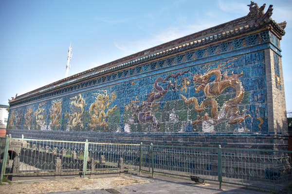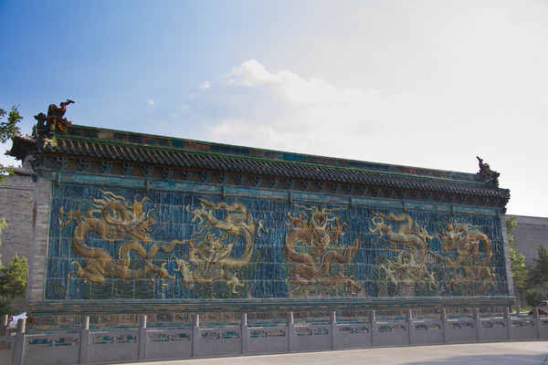 第一站是九龙壁。门票十块,学生证什么的半价五块,就是一块代王府的照壁。