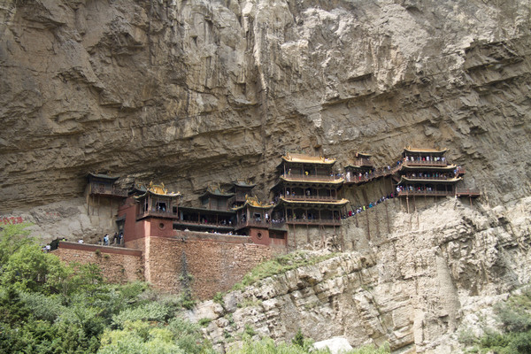 悬空寺给人的感觉用相机是难以拍出来的。下面这张照片用的焦距是18mm,已经竭尽我们相机所能,拍出这样的全貌,但仍然无法给人现场感受到的那种山的险和寺的悬。