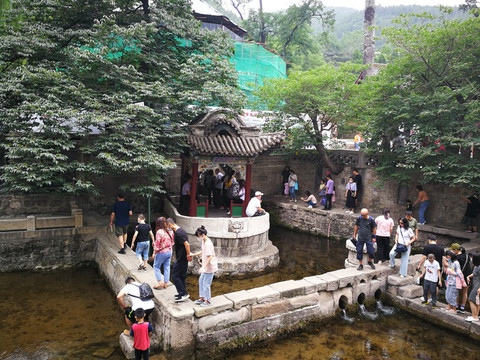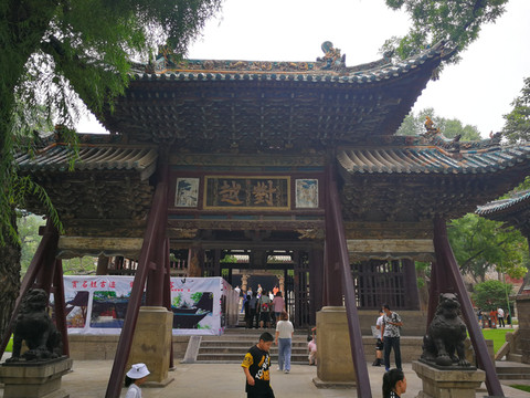 7月22日早上八点半,让晋祠宾馆直接送到晋祠入口。晋祠原为唐叔虞祠,后为晋王祠,是晋国宗祠。由于时间早,人比较少,很快通过验码进入晋祠。进入晋祠,首先看到的是水镜台,是不是很像孙大圣变的?台子背面是戏台,直面圣母殿。