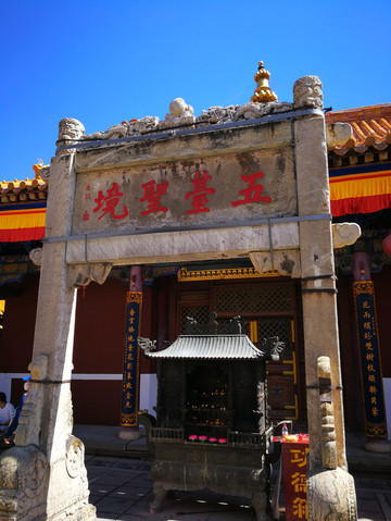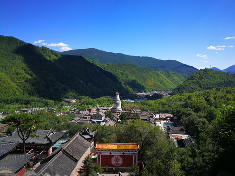 7月19日早上,早早地洗漱完毕,向台怀镇触发。由于估计不足,在山门口拍了半个小时队,才开进景区里。从山门开到景区大概有13公司,幸亏路上不堵,上午10点终于到了台怀镇。艳阳高照,天空碧蓝如洗。五爷庙,塔院寺在碧蓝的天空下显得分外宁静。