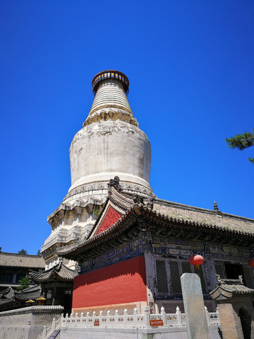 来到前庙,俯瞰108级台阶,整个台怀镇尽收眼底,碧空、青山、白塔胜似一番世外桃园,在此享受片刻安宁,修炼千年的佛法。