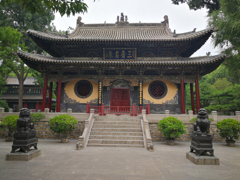 穿越对越牌坊是献殿,是存放呈献圣母贡品的大殿,其形状如龟,寓意长命百岁,整个建筑为木制隼卯结构,没有一颗钉子。献殿往前可见一座肃穆庄严的大殿,是为圣母殿,连接两个殿即为著名的鱼沼飞梁,建于宋代,是一座十字桥形桥,俯瞰如大鹏展翅,造型独特为国内罕见,是晋祠古建三宝之一。走过鱼沼飞梁桥即来到了晋祠最著名的圣母殿,只见外面八根大柱盘着八条宋代木雕盘龙,历经千年依然清晰可见,怒目利爪栩栩如生,这也是国内罕见的宋代木雕盘龙精品,亦为晋祠古建三宝之一