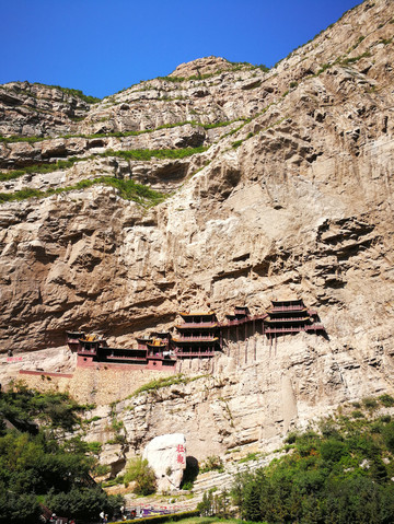 7月20日早上8点,准时从浑源县城出发,花了20多分钟就到了悬空寺。作为千年古刹,悬空寺作为佛、道、儒三教合一的独特寺庙坐落于恒山峭壁间,素有“悬空寺,半天高,三根马尾空中吊”的俗语。到达山脚,整个悬空寺尽展眼前。这次有幸登临,楼道极窄,只能侧身通过,走在上面,楼板发出咯吱咯吱的响声,心里多少有些紧张。李白经过此处不禁留下“壮观”两个。