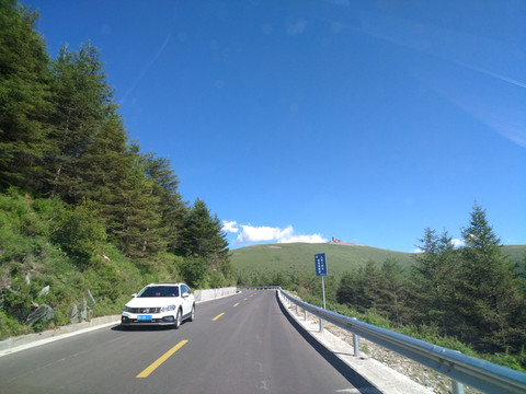 开过山顶,草甸上到处可见散养牛,有的在山坡吃草,有的在道路中央散步,一点也不惧怕车辆。