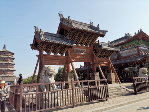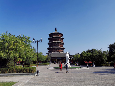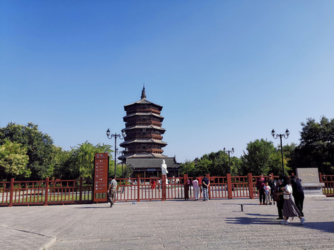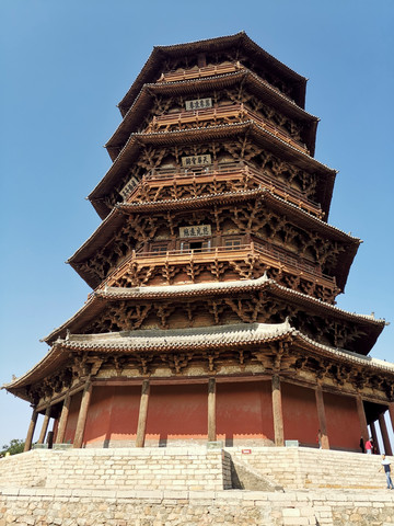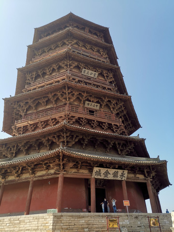 释迦塔据说是辽代大辽国萧太后(萧绰)提议由田和尚奉旨募集资金修建的,这位萧皇后雄才大略,摄政期间指挥契丹族的部队屡屡挫败大宋朝,给北宋造成了极大的威胁,话说远了,资料记载辽清宁二年(公元1056年)开始修建,金代明昌六年(1195年)增修完毕,前后一百多年,金国灭了辽国,这也是一项跨国跨世纪工程。